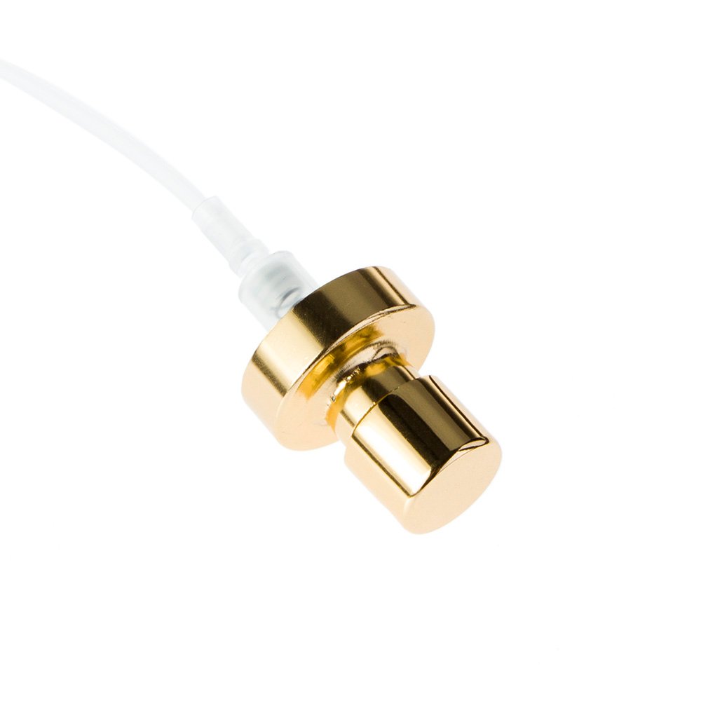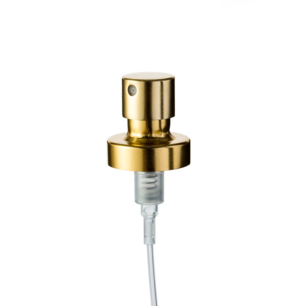 The sprayer delivers a fine mist with a smooth actuation, ensuring a luxurious user experience. With output ranges from 0.04ml/T to 0.12ml/T, it suits various applications from light body mists to concentrated eau de parfums. The aluminum outer shell is available in multiple finishes including shiny gold, matte silver, anodized color, and more.