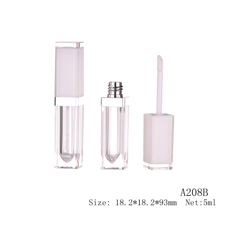 The A208B Lip Gloss Tube features a flat square body with clean, modern lines and a clear, transparent design that enhances product visibility. With a 5ml capacity, this container is ideal for lip gloss, lip tint, liquid eyeshadow, or skincare serums.
