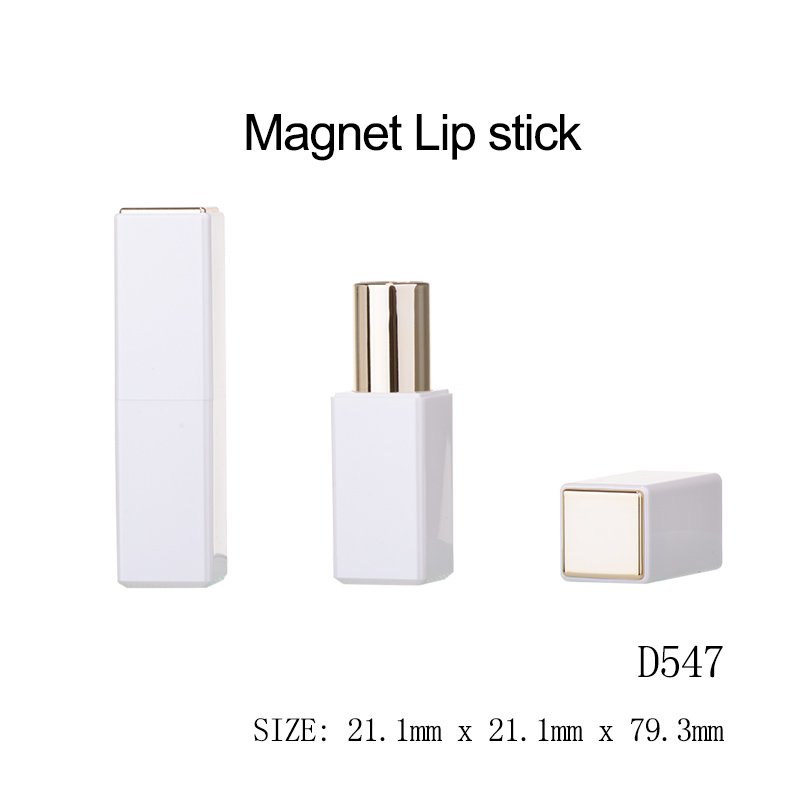 The D547 Magnetic Lipstick Tube features a sleek, modern square design with a glossy white body and elegant gold accents. Built with a high-quality magnetic closure, this lipstick packaging offers both secure functionality and a premium user experience. It’s the perfect choice for high-end beauty brands looking to elevate their lipstick line with luxury packaging.